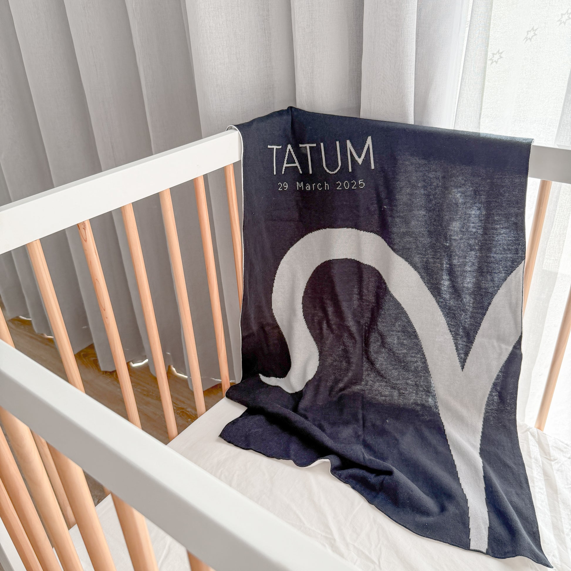 Our beautifully crafted personalised knitted blankets are made with love in our home, designed to be a timeless keepsake for your little one.